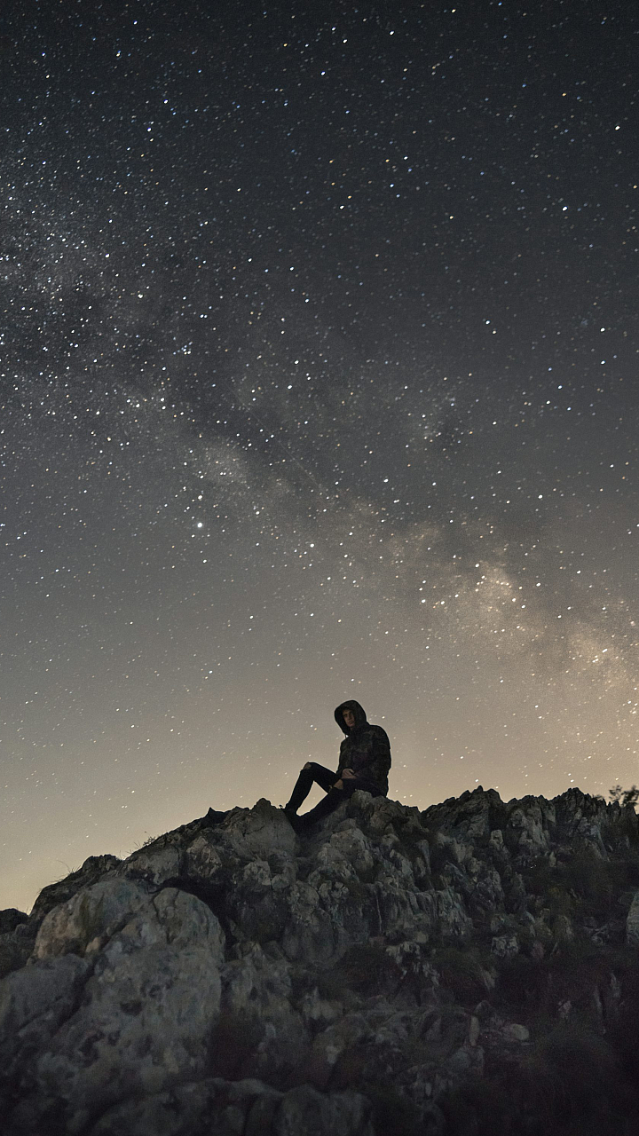 person, sitting, white, mountain, rock, stone, cliff, landscape, nature, scenery, outdoors, serene, peaceful, solitude, meditation