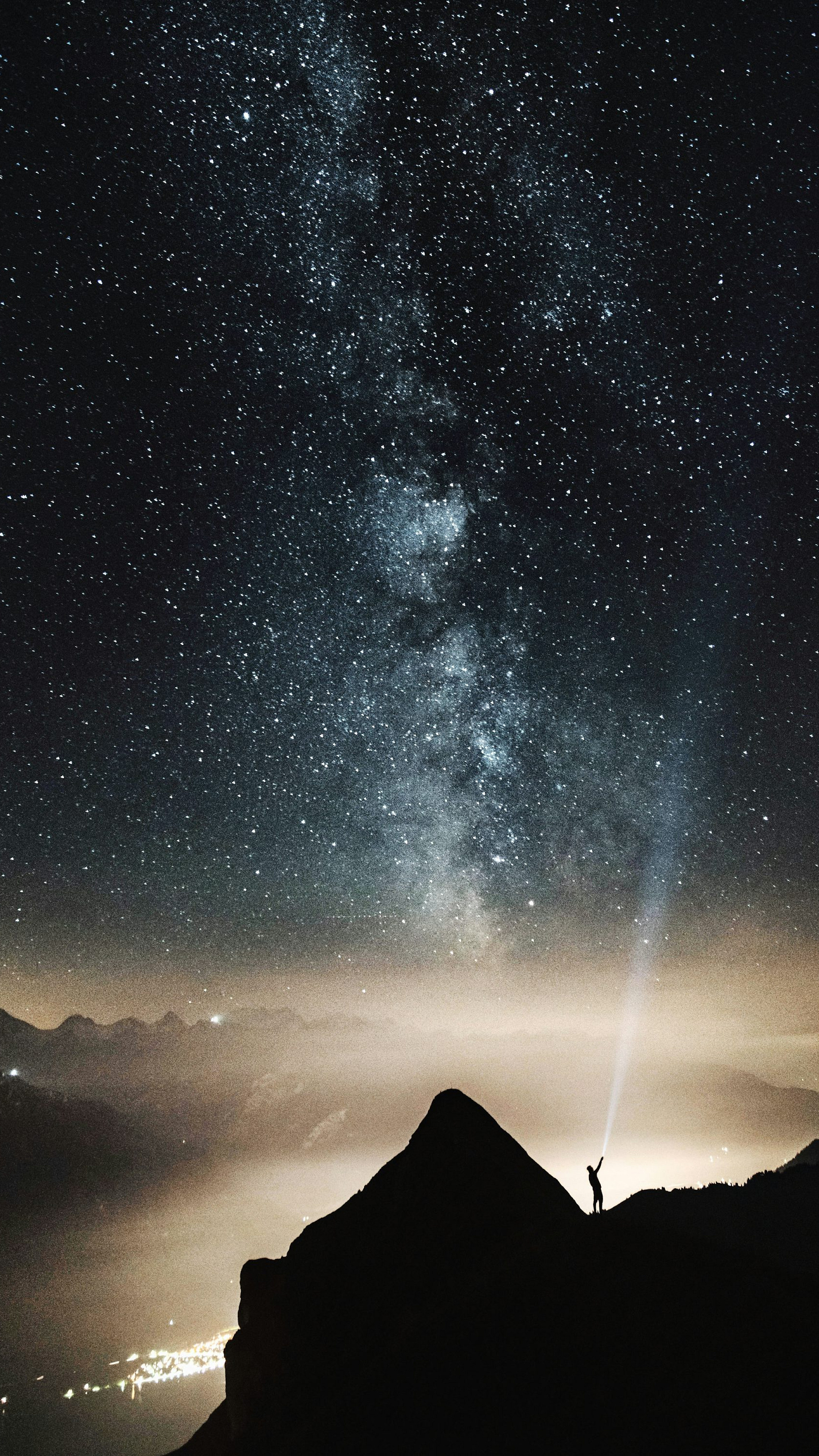 Wallpaper Silhouette of Person on Mountaintop with Flashlight